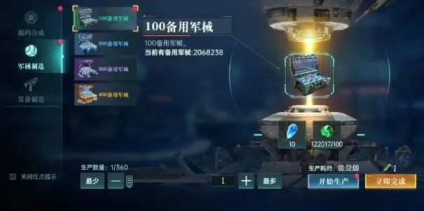 游戏中不论是主线任务还是各种玩法都会产出一些基础材料,可以在生产中制造【招募源码】、【装备】以及对抗最重要的【备用军械】,备用军械在新手期buff结束之后消耗量非常大,需要跟得上我们部队的消耗速度,否则部队没有补给,就无法出征哦~