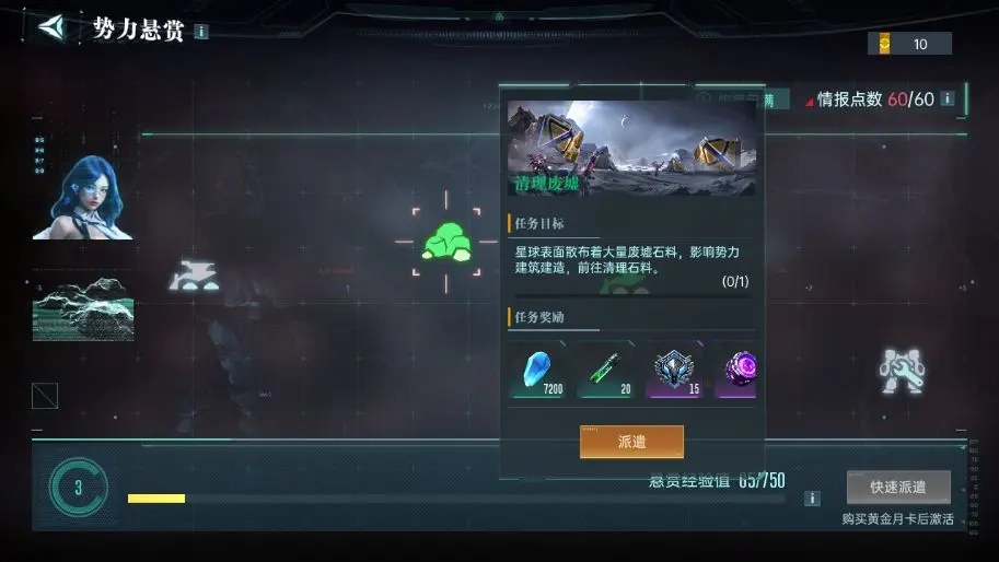 每日的势力悬赏一定要记得完成,随着势力等级不断提升,能为玩家带来大量英雄经验和各类资源。每次进行悬赏任务会消耗1点情报点,情报点最多可以囤积到60点,可别超过这个上限哦~