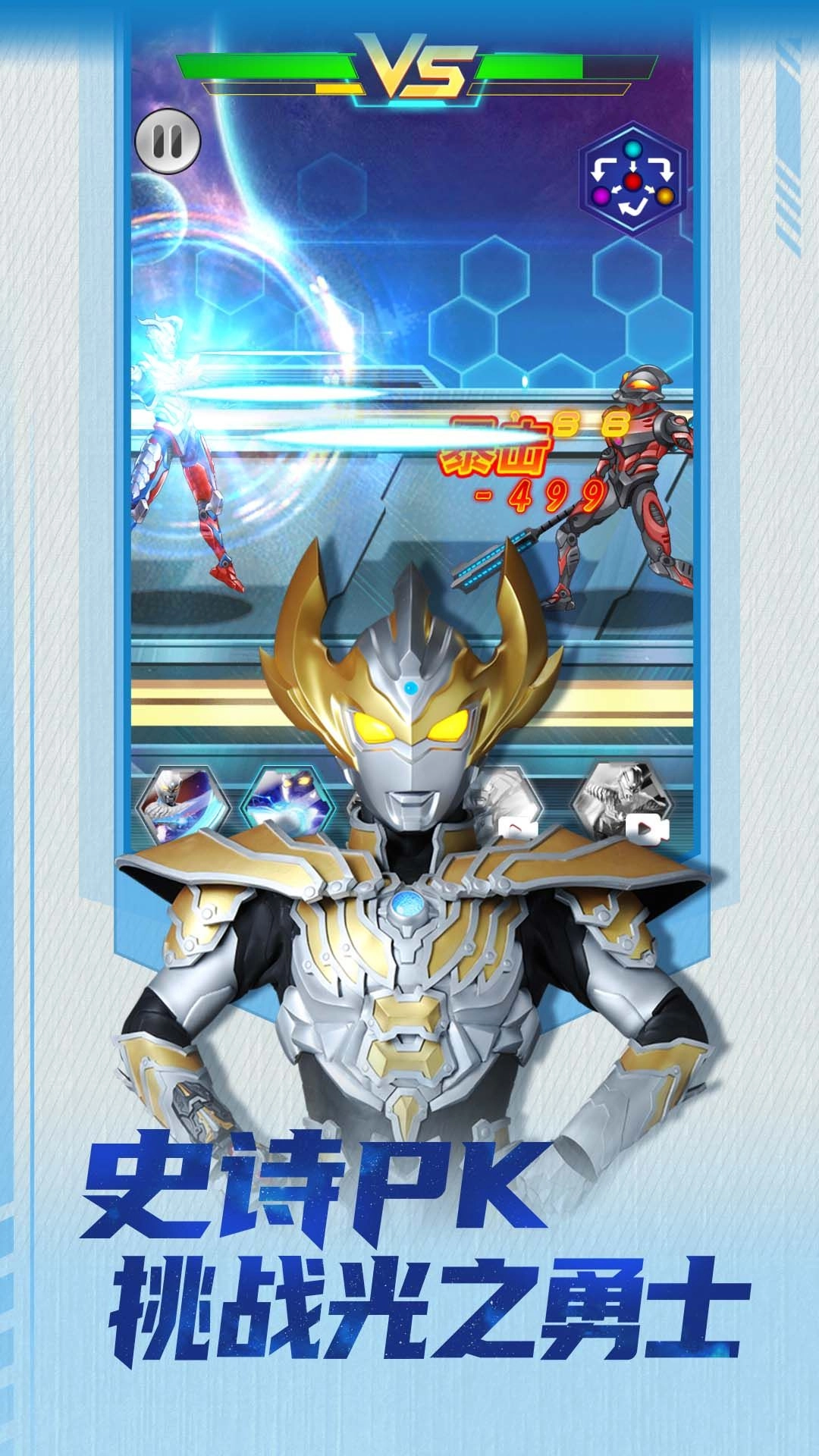 2. 积累战斗经验,在累计的挑战时间中,感受精彩的奥特曼游戏世界冒险