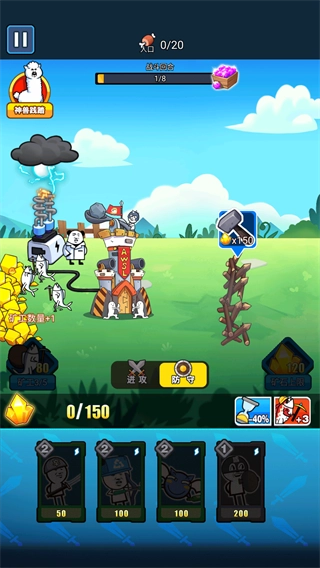 游戏刚开始时兵种种类不算丰富,玩家可以通过推进主线的闯关玩法逐步解锁新的兵种。这里需要留意的是,各个兵种消耗的矿石数量存在差异,而且随着挑战难度的提升,除了要合理召唤兵种外,还得把重点放在升级现有兵种、完成兵种进阶上。