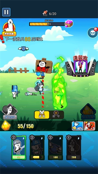 游戏里设有广阔的超大地图,上面分布着诸多关卡,像滑稽草原、尼玛山脉、逮虾沙漠、狗头岛、虾米海滩以及沙雕雪地都在其中。这些不同的地理位置对应着不同级别的难度挑战,所以你得合理组合搭配各类兵种,以此来实现世界的统一。