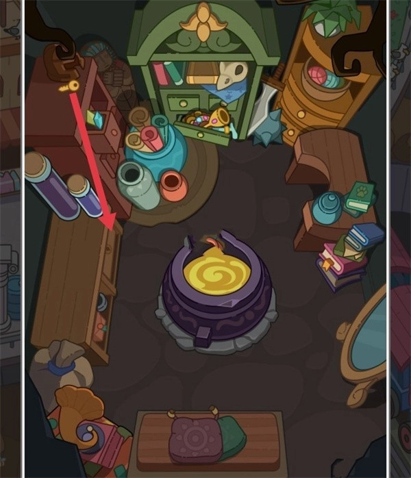 2、点击左侧的柜子,会出现一把锤子,用这把锤子去砸存钱罐(里面装有金币)。