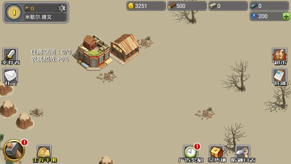 点开左下角的建造按钮就可以早各种建筑了,例如帐篷可以为幸存者提供住处并产出金币,农田可以种植作物,木材厂可以产出木材,招募中心可以招募幸存者等等。