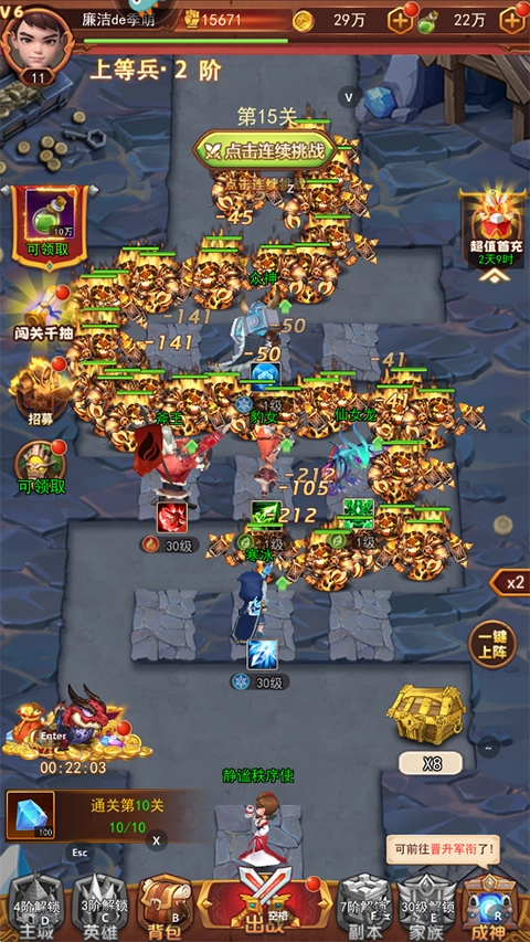 1、寒冰射手、众神、先知、凤凰、齐天大圣等众多明星英雄,让您耳目一新,更有无尽试炼、跨服争霸、成神之路等多种玩法,超多类型的英雄,玩家快速的收集,打造强大的阵容,自由冒险。
