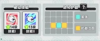 顾名思义,进化扩散可以提升周围英雄的战斗力,或破坏周围的障碍物。每个品质每个英雄扩散的范围是不一样的,我们以大家最开始获得的投手熊为例。