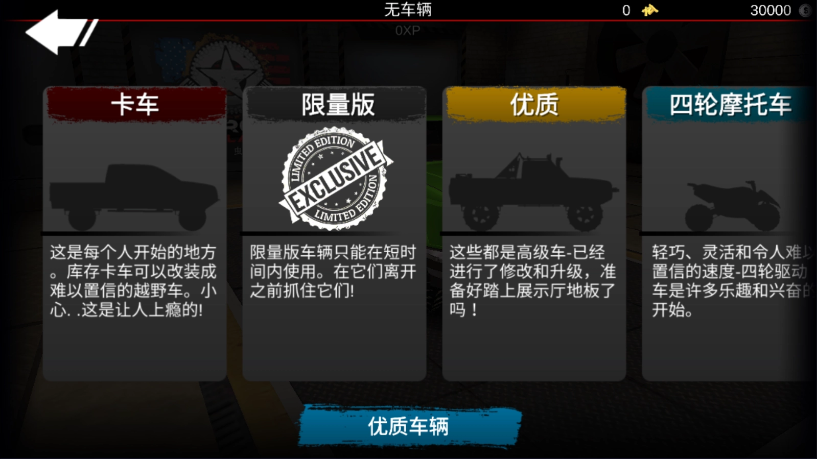 目前有9种优质车辆模式可供挑选,像卡车、限量版车型、优质款以及四轮摩托车等都在其中。