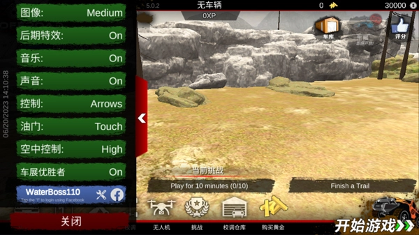 3、点击左上角的白色箭头能够返回游戏主界面,左侧的红色按钮即为游戏设置,在这里可以对图像高低、音效以及油门等功能进行设置。