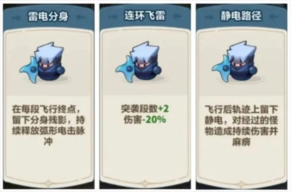 让卡卡获得分身能力并造成持续伤害,增加突袭段数提高攻击距离,静电路径补充麻痹控制效果!