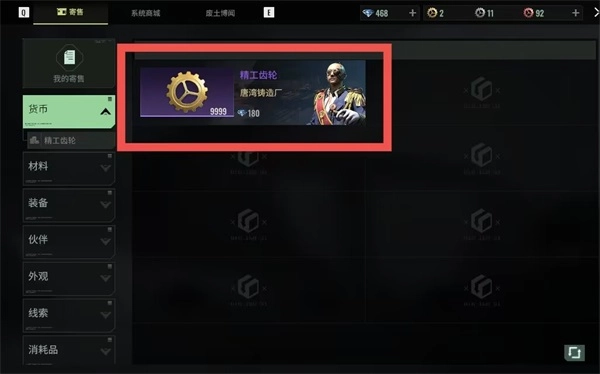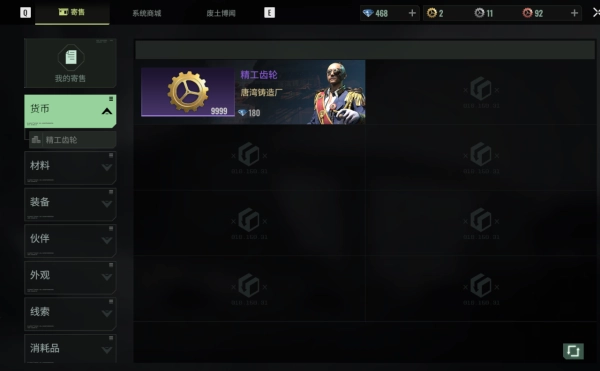 齿轮购买方式:在右上角市场-寄售中找唐湾铸造厂购买,也可以花费钻石购买其他玩家出售的齿轮。