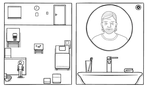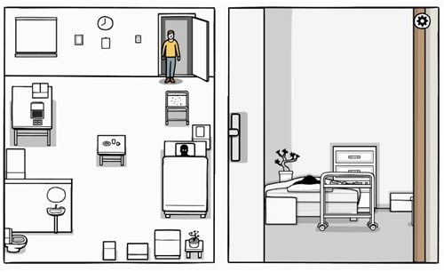 8、最后,点击电视机下面的方块,主角开始摇晃,帮主角盖上被子,主角的记忆,发生了变化…