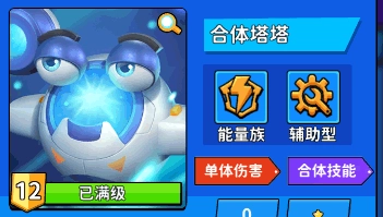 最后我们添加了一个万能合成塔,这样即使场上没有同星级同种类的炮塔,也能继续进行升星强化;此外,合体塔的技能在合体时会额外提升攻击力,为其他炮塔提供额外的攻击加成。