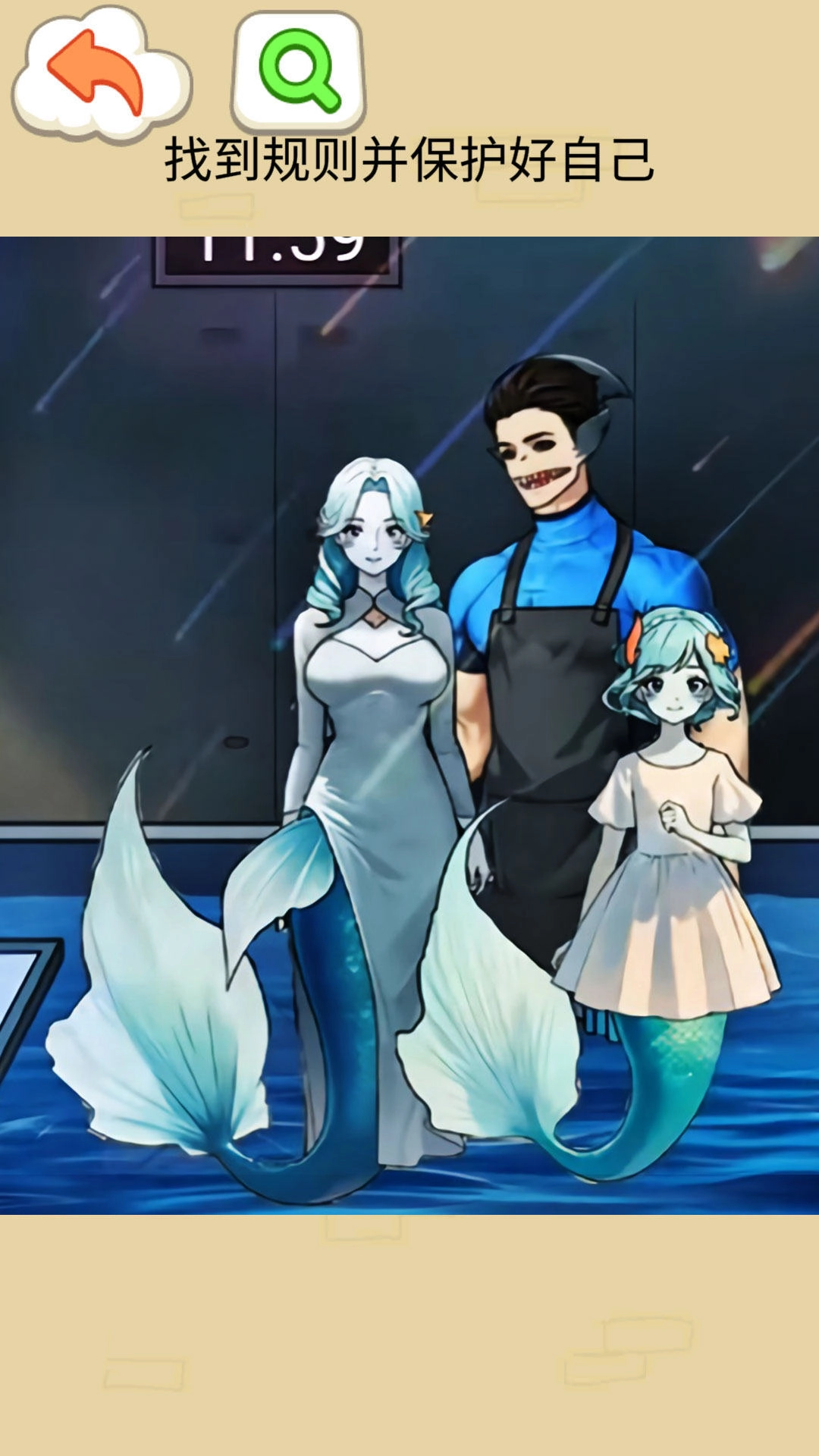 5、随后前往鲨鱼馆,点击玻璃上贴着的纸条,便会出现第二条规则。