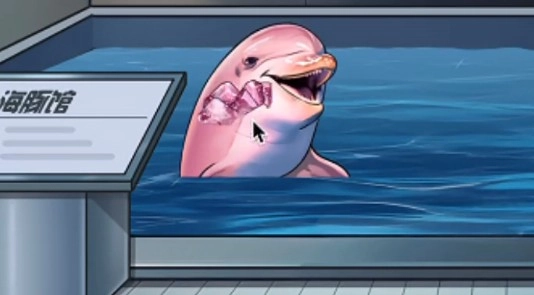 3、出现的第一只海豚,给它喂养灰色冰块,第二只海豚喂养粉色冰块。
