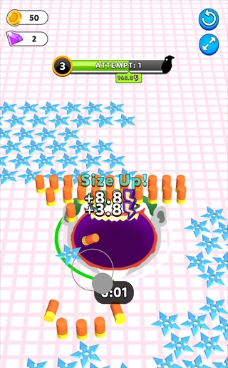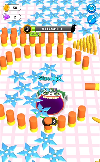 7、积攒的金币能够用来进行全方位升级,比如提高黑洞的移动速度和体积大小,也可以在商店里购买独特的皮肤和强力的技能,从而打造出具有个性化的战斗体验。