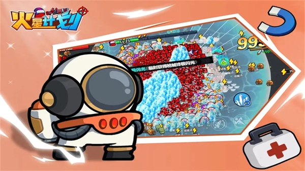 《火星计划》是一款玩法别具一格的割草类游戏。在游戏中,玩家将化身一名奔赴火星的太空战士,肩负着探索火星、击败火星上邪恶敌人的使命。这款游戏不仅拥有独特的风格与鲜明的角色设计,还设置了各类富有特色的关卡,难度也恰到好处,无论是初次接触的新手,还是经验丰富的老玩家,都能在此找到契合自身的挑战。与其心动,不如即刻行动,快来加入《火星计划》的冒险吧!