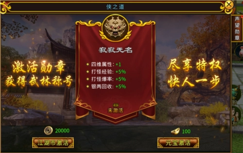 5、还是购买草心丹,可以让经验获取暴增30%,提升会员可以永久获得爆率和经验获取,购买日卡周卡可以大幅度提升江湖币的获取,助你领跑全服