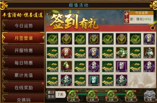 6、参与游戏运营活动,比如月签到登录(累计签到)、在线奖励以及各种新服/每日/累充特惠礼包等