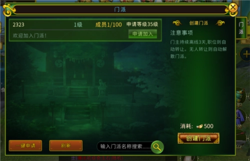 注意:门主持续离线3天,会则自动转让门主职位,如果无人转让则自动解散门派