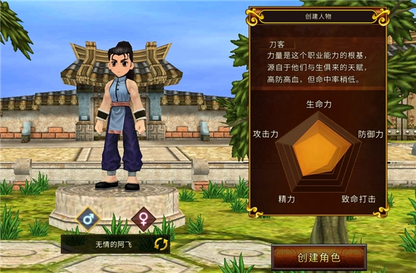 刀客这一职业专精于刀类武器的运用,是典型的近战攻击职业。力量属性构成了该职业能力体系的核心根基,高防御与高血量是其自带的天赋优势,美中不足的是命中率略显偏低。综合来看,刀客兼具出色的攻击与防御能力,整体实力较为均衡,是冲锋陷阵、抵御敌人的理想选择。