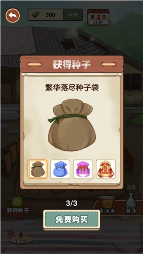 1、作物可以很容易地在背景中生长,收割道具可以帮助作物健康生长;