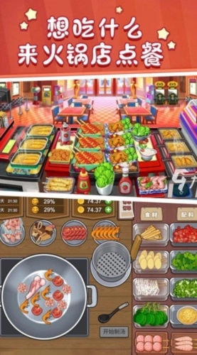 1、创新玩法:通过挑战关卡获取金币,为顾客烹制美味的火锅。