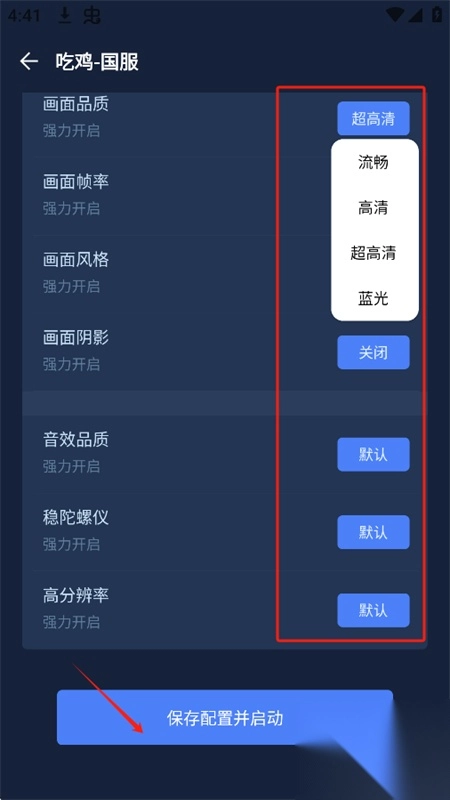 5、根据需求设置优化参数,完成后点击“保存配置并启动”。