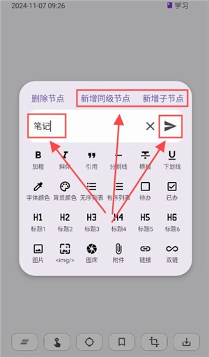 4、修改界面可以新增同级节点和子节点,这样就能扩展导图项目了。