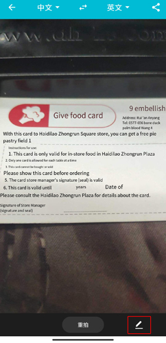 1、当用户在拍译页面完成拍照翻译后;