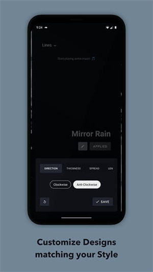 Muviz Edge 的可视化效果可以自定义,包括线条的方向、厚度、长度、速度等,都可以自定义,还可以调整配色,高级版本能够更具专辑封面的颜色自动取色,感觉还是很酷的。