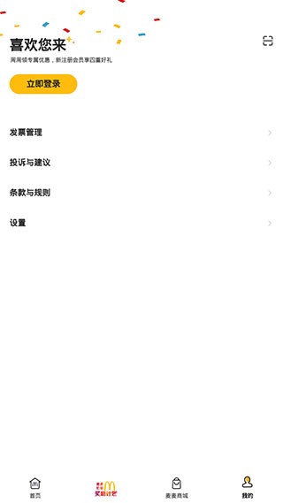 1、当进入软件的【首页】后,我们会看到两个最为常用的功能,即麦乐送与到店取餐。