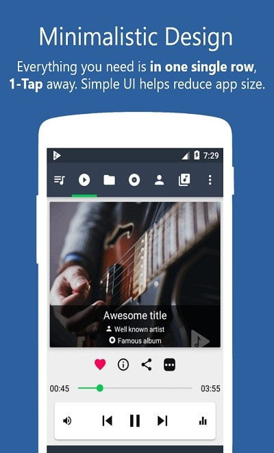 为实现便捷导航,我们把应用程序的所有关键组件(像主播放器、队列、文件夹、专辑、艺术家、播放列表)置于同一排。如此一来,您仅需一次点击,就能访问这些组件。