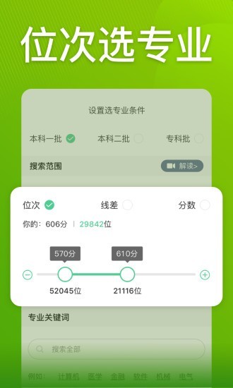 用户仅需输入分数,短短一秒便能锁定符合该分数的学校,且这些学校会依据“打孔,稳定,保护”的规则进行排列。此外,该功能还支持以“大学第一”“专业第一”的方式展示,同时能够按照批次、地区、学校级别、学校类型进行筛选。