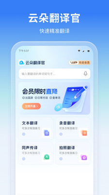 云朵翻译官是一款免费且高效的翻译工具,它不仅支持多种外语的极速翻译,还能翻译工作中的文档资料,学习英语时遇到不懂的单词或语句,也能直接在这里翻译。
