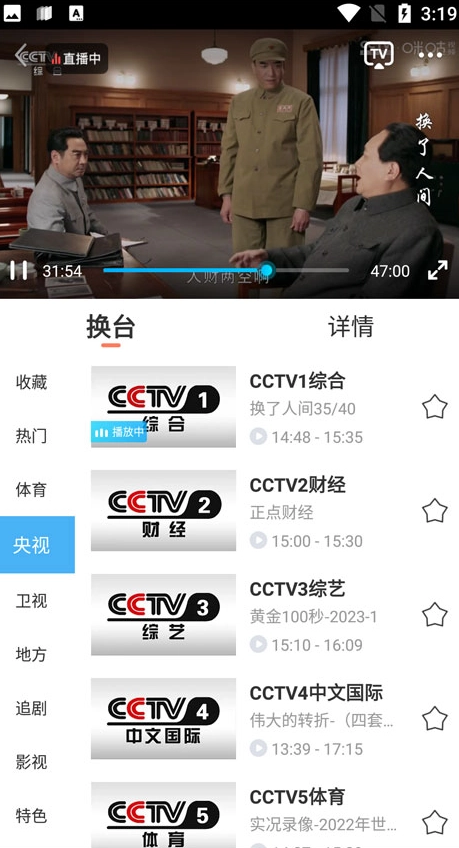 3、在央视中,可以观看央视的众多频道,像CCTV1、CCTV3、CCTV4等等