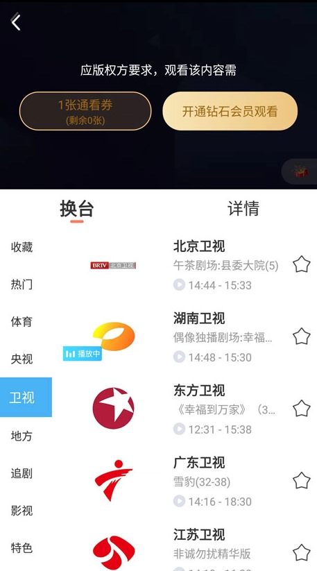 4、有的卫视观看需要会员,大家可以选择观看