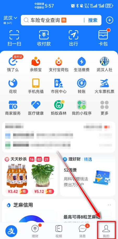 1.打开支付宝,点击右下角我的。