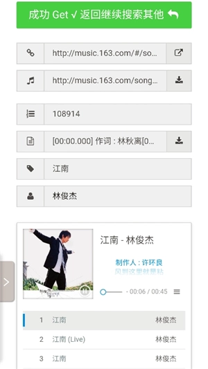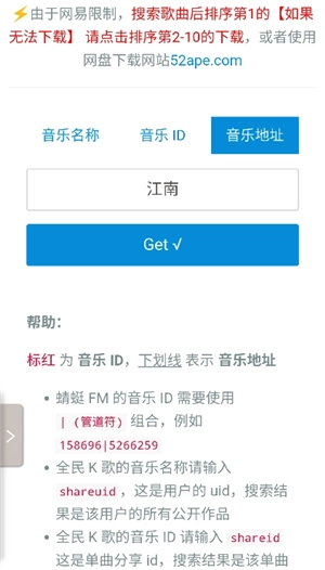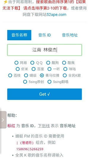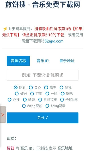 5、除此之外,我们还能够依据音乐ID、地址对新歌进行检索,更多实用功能,期待大家前往煎饼搜音乐去挖掘。
