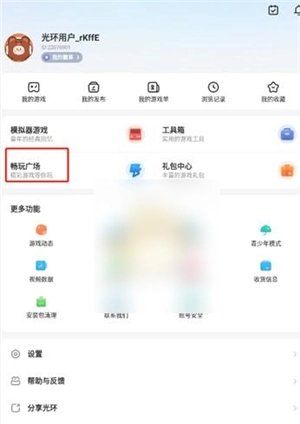 2、然后在我的页面中点击【畅玩广场】;