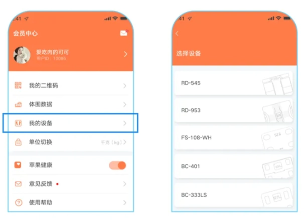 进入首页后,点击右上角的秤图标进入设备绑定页面;