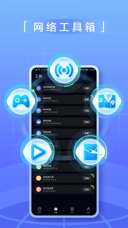 能够支持运营商2G、3G、4G、5G网络,还能对WIFI网络进行测速、时延抖动测试与诊断,可实时且精准地向用户呈现网络状态。