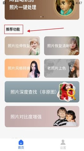 2、推荐功能重点聚焦于照片修复,无论是老旧照片还是模糊照片,皆可实现修复。