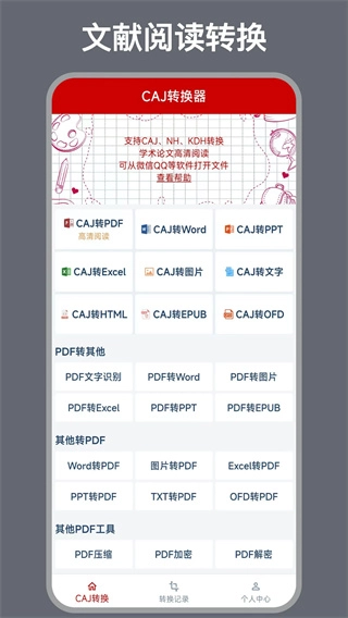 CAJ转换器在手机中所占内存极小,却具备极为强大的功能。只需简单操作,它就能助力大家迅速将文件转换为多种不同格式并保存,为用户带来更为优质的使用体验,堪称一款功能全面的文件转换软件。