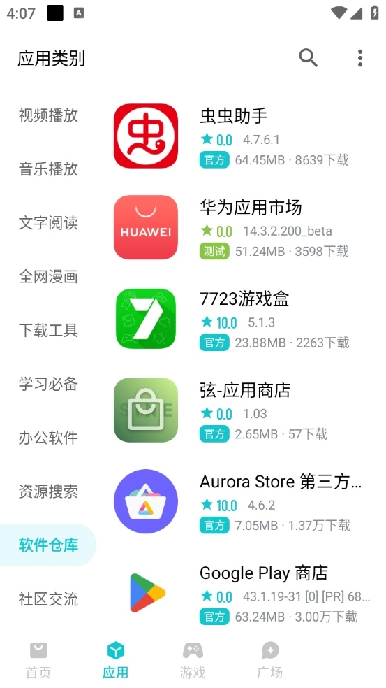 3、在“应用”页面,左侧栏目有详细的应用分类,包括影视、小说以及漫画等等类型。