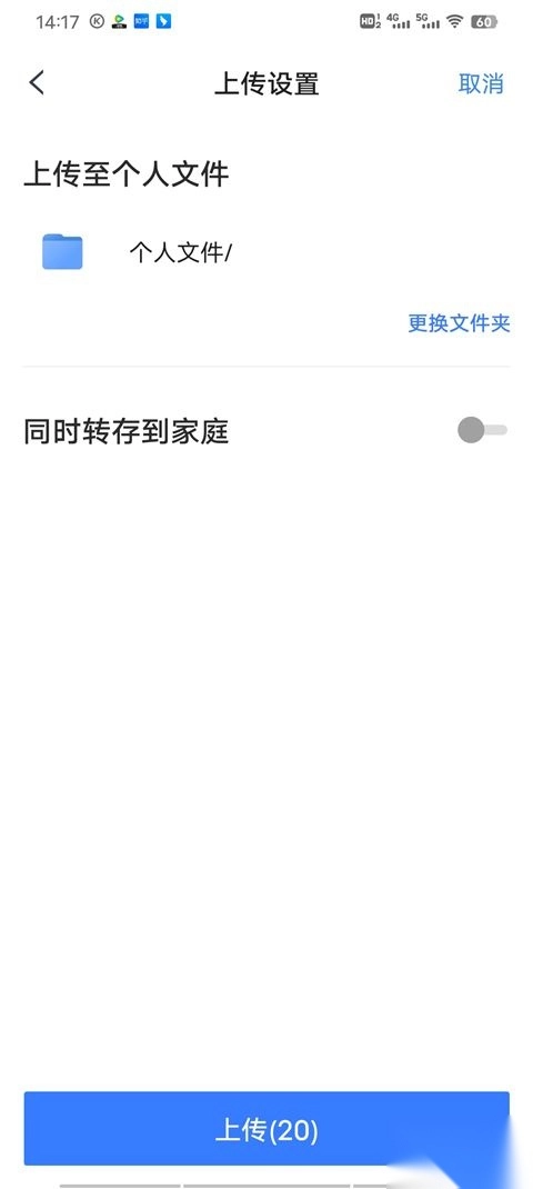4、完成上传操作:勾选照片后,点击 “更换文件夹” 选存放位置,再点 “上传”,实现批量上传。