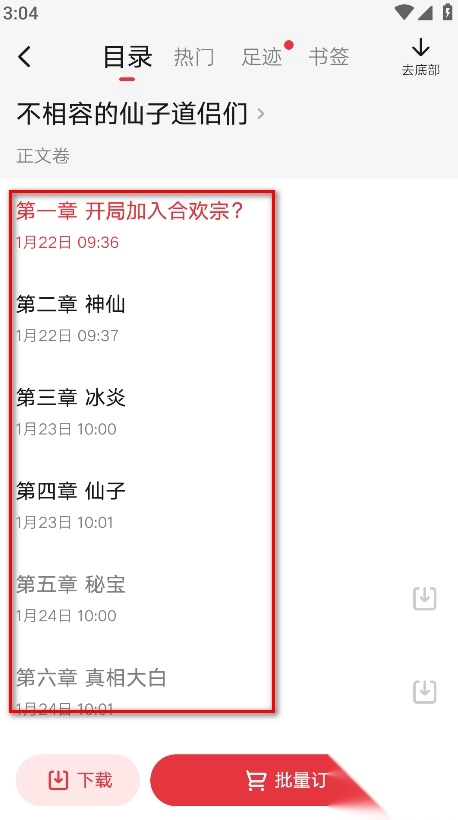 5. 挑选并点击我们打算阅读的章节就行。