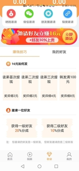 2、收徒弟赚钱,收徒最高奖励16元,还能享受累计30%分成奖励。