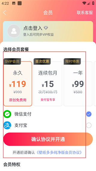 4、在会员页面,选择好条件后,点击确认协议并开通即可设置来电视频。