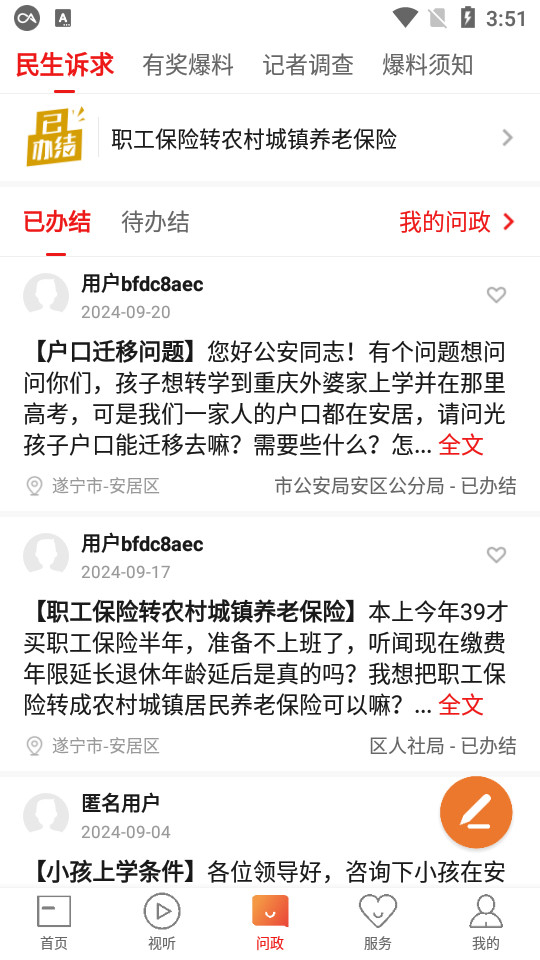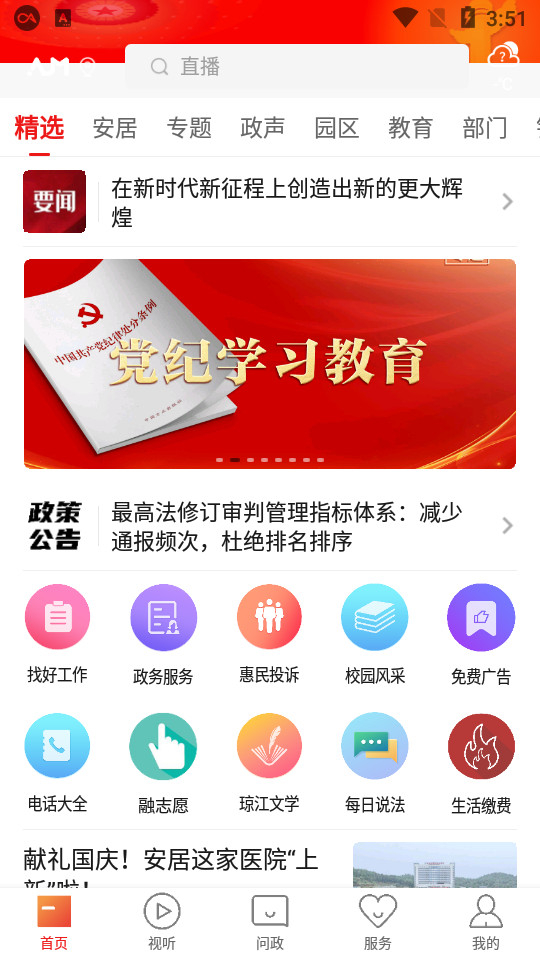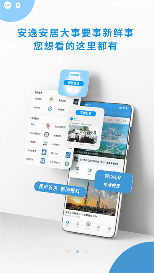 安居融媒是一款集图文新闻、视频新闻、频道直播和活动直播等功能于一体的新闻服务类互动平台。用户可以在平台上发布民生诉求、新闻爆料等内容,同时还能查看短视频新闻,以及获取定位天气、政务服务、生活服务等相关信息。