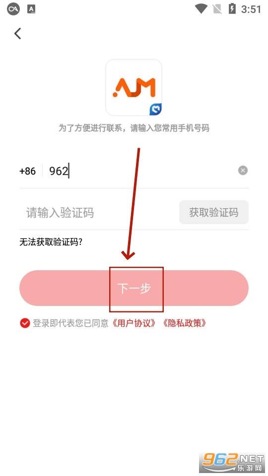 输入手机号验证码,勾选隐私协议,点击下一步即可注册成功