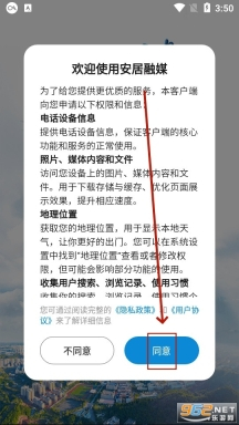 安装并打开安居融媒, 点击 同意,同意隐私政策